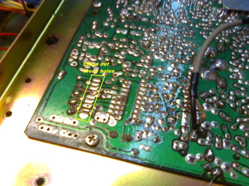 3. Unsolder the multi color wires at the main board, that come from the channel selector board, to the main board.