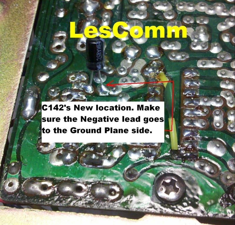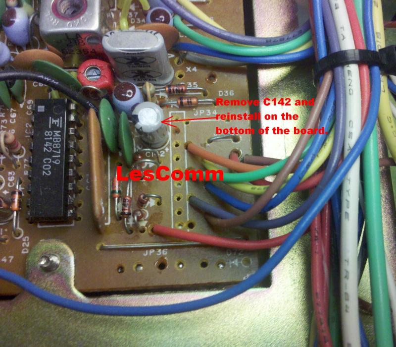 10. C142 gets in the way of the Cobra adapter connector, so we must move it to the bottom. Remove C142 and install it on the bottom of the board as shown. Then install the Cobra adapter to the main board as shown. Again, take note of the "<<<SIDE" MARK. Connect the cable to J3a on the L3S LesComm board.