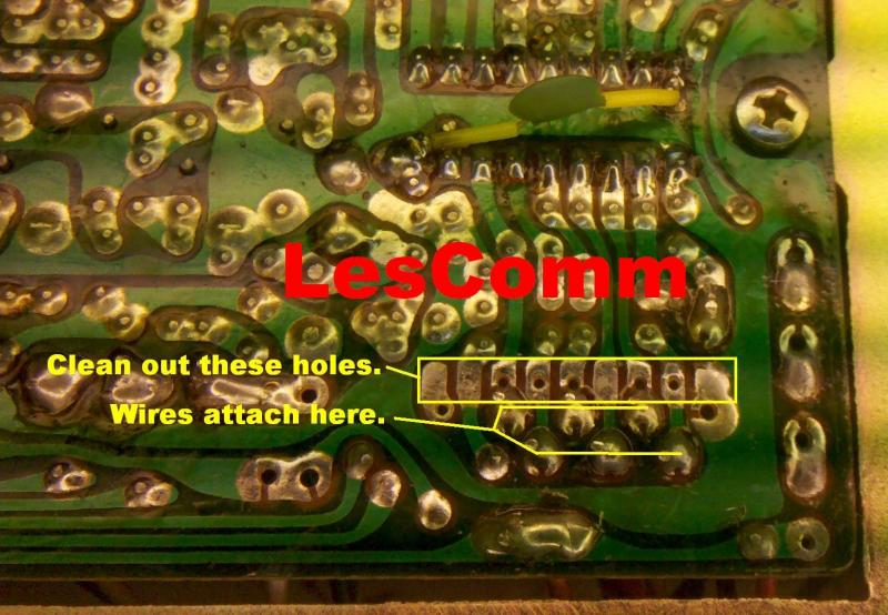 7. Unsolder the six multi color wires shown - only, at the main board, that come from the channel selector board, to the main board.
